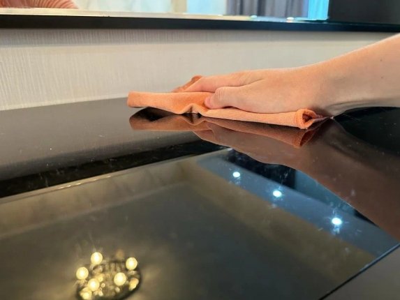 Сбрызнете раствором чистую тряпку из микрофибры или хлопка и протрите все гладкие поверхности: мебель, столешницы, бытовую технику, плафоны светильников.