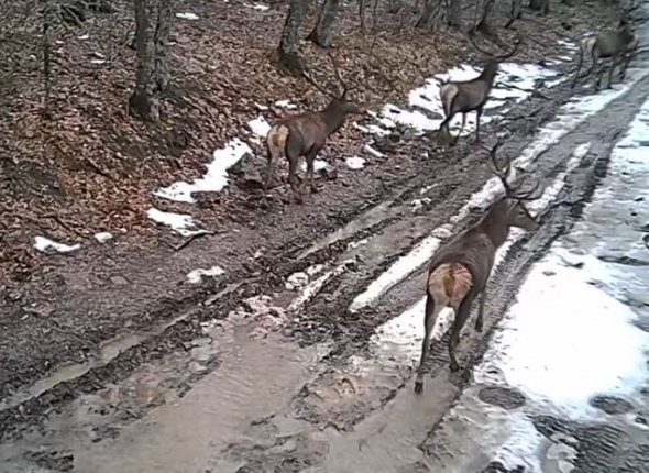 "Кадры особенно ценны для экологов, так как позволяют оценить состояние популяции в зимний период. Как правило, олени держатся вместе, зимой собираются в более крупные табуны. Кормовая база у крымского благородного оленя включает около 130 видов растений, в том числе около 40 видов деревьев и кустарников", — написал Михаил Развожаев в своем телеграм-канале.